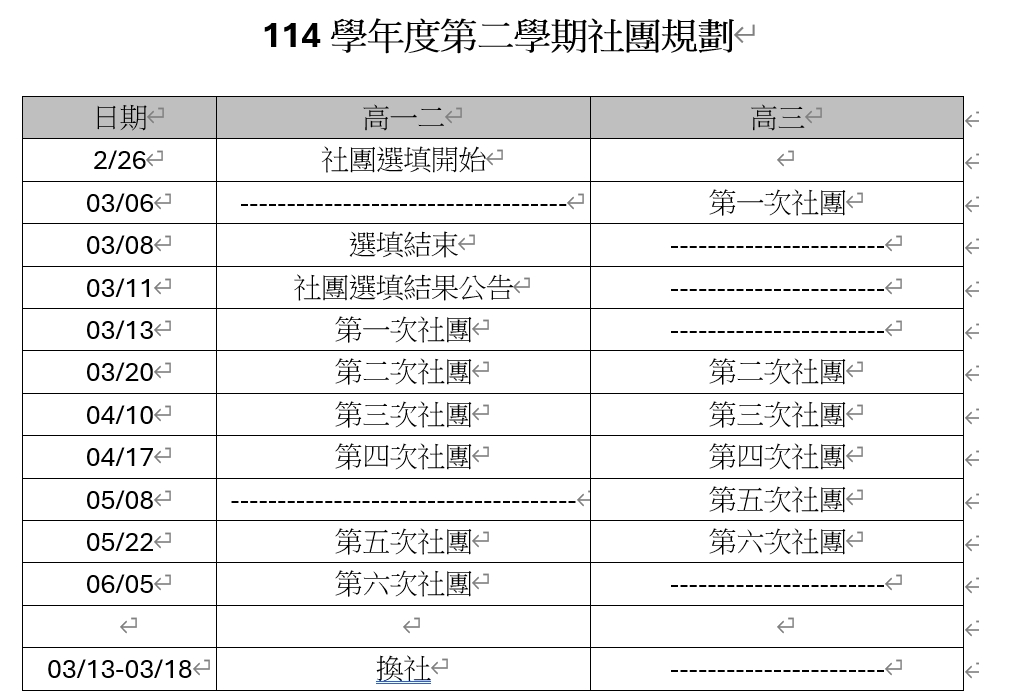 選社時間:加退選時間及社團日期